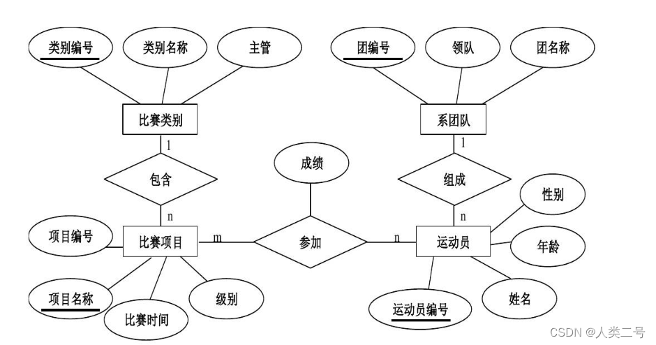 - 表示为:关系名(属性1,属性2,…,属性n)