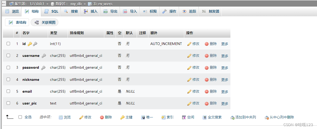 创建一张数据表(保存用户信息的表——使用mysql数据库且使用sql语言)——我使用的是XAMPP自带的mysql(创建此表——表中的字段有: