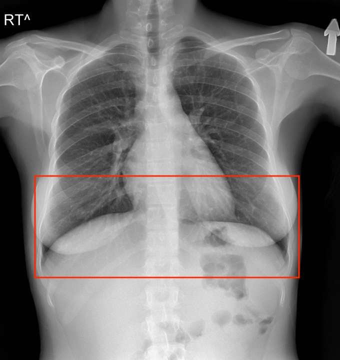 看看下面的胸部 X 光片,自己决定——肺是在横膈膜后面还是前面?