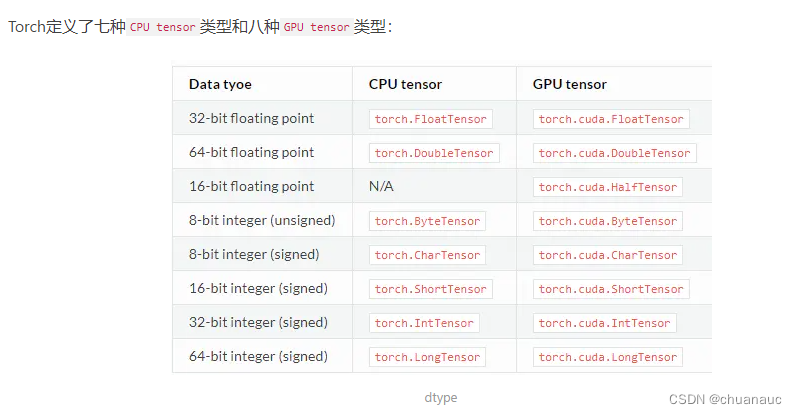 (1)tensor的数据类型有哪些: