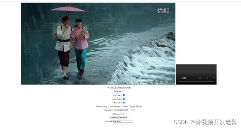 http://192.168.41.252:8091/webrtc/ 可以播放webrtc流 播放url: http://192.168.41.252:8091/index/api/webrtc?app=live&stream=test&type=push