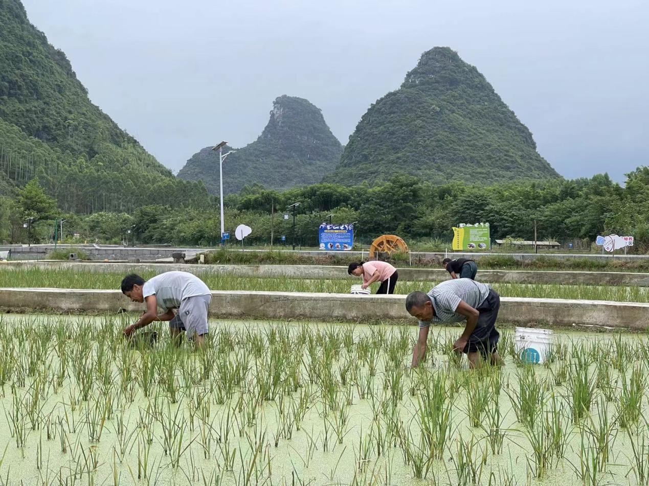 ▲柳江区里高镇木祥屯村民在采集收获螺蛳。崔辰光|摄