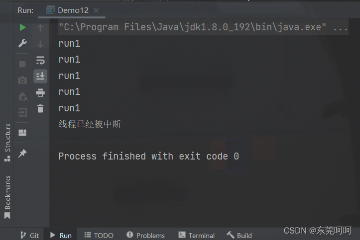 interrupt()方法是普通方法,作用是将此时的标志位设置为true,也就是发送中断请求,改变线程的状态。