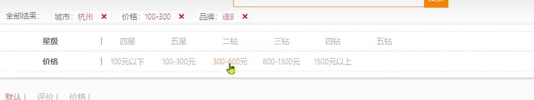 目前,页面的城市列表、星级列表、品牌列表都是写死的,并不会随着搜索结果的变化而变化。但是用户搜索条件改变时,搜索结果会跟着变化。