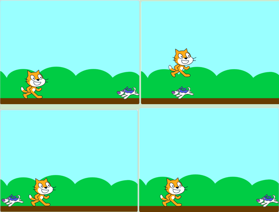 (4)小猫碰到小狗,程序停止。