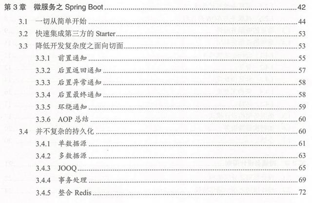 第三章详细地介绍 Spring Boot 开发,包括使用它的优缺点,以及在企业级开发中常用的 工具包的整合,包括面向切面编程、 We 开发、文档管理和调度管理,最后结合 Dubbo 完成一个示例性的分布式工程。