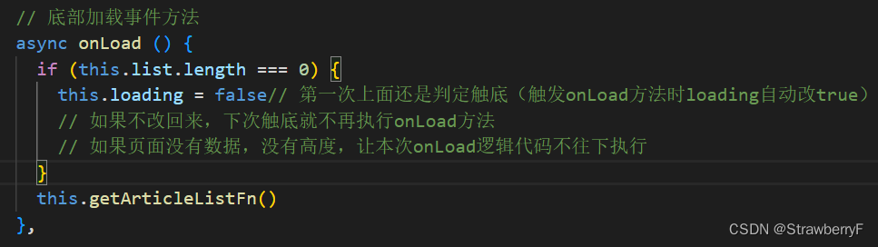 - this.loading = false// 第一次上面还是判定触底(触发onLoad方法时loading自动改true)