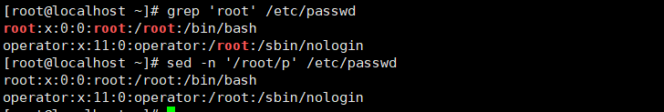 - [root@localhost data]# sed -n '/root/p' passwd