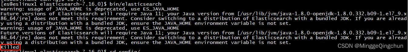 Elasticsearch在启动过程中被自动killed,是内存不够了,由于ES是运行在JVM上,JVM本身除了分配的heap内存以外,还会用到一些堆外(off heap)内存。 在小内存的机器上跑ES,如果heap划分过多,累加上堆外内存后,总的JVM使用内存量可能超过物理内存限制。 如果swap又是关闭的情况下,就会被操作系统oom killer杀掉