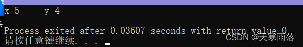 如图,执行x>3是为假,退出逻辑运算符,不在执行--y>2,输出0,y依旧是4