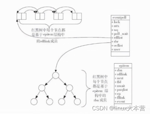 linux采用eventpoll数据结构来管理epoll,红黑树每个节点用epitime数据结构来管理,具体请参考linux3.16:eventpoll.c 和 eventpoll.h 主要位于fs/eventpoll.c 和 include/linux/eventpool.h。