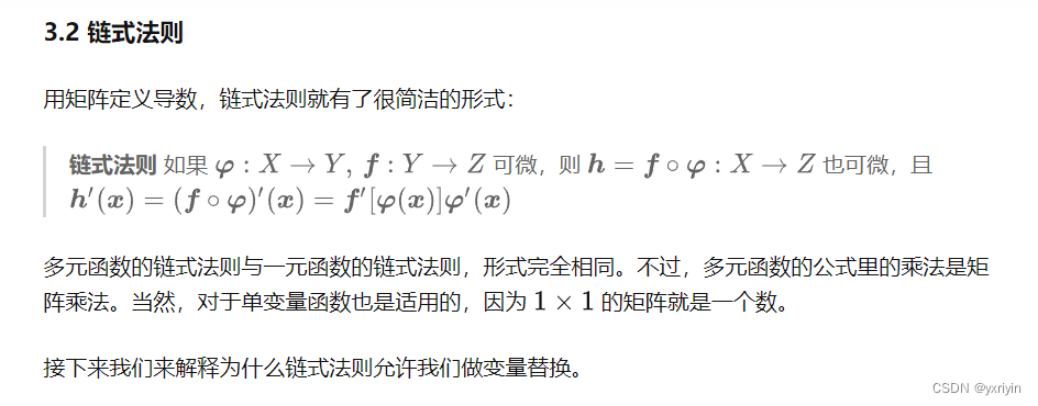 这里倒是有些不同,前面我们理解的是映射之间的相等,但这里的链式法则,未知数并不一样,有t和x两个未知数,所以,还是从导数的角度去理解,但这样还有个除法的理解,不建议这么理解,会有歪打正着的感觉,而且对于多元函数也不成立。