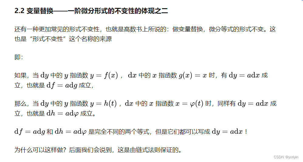 首先我们要理解一阶微分形式不变性。核心参考:微分形式不变性的理解,以及关于对微分的各种理解的讨论 - 知乎