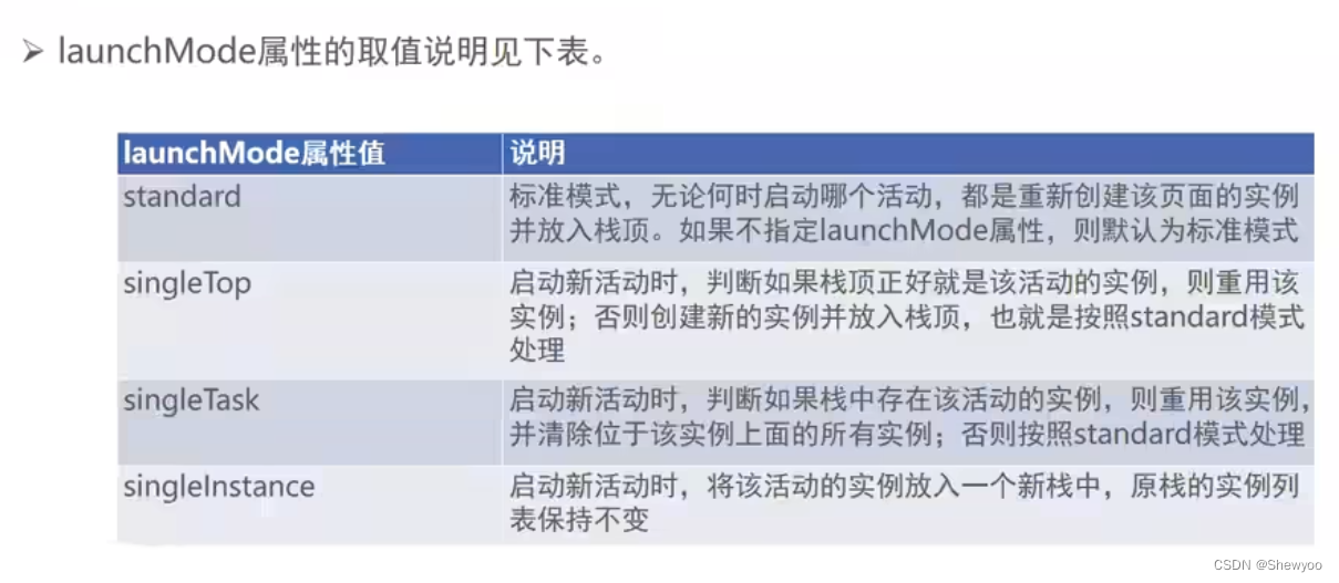 应用场景:适合开启渠道多、多应用开启调用的Activity,通过这种设置可以避免已经创建过的Activity被重复创建,多数通过动态设置使用。如:微信、支付宝等。