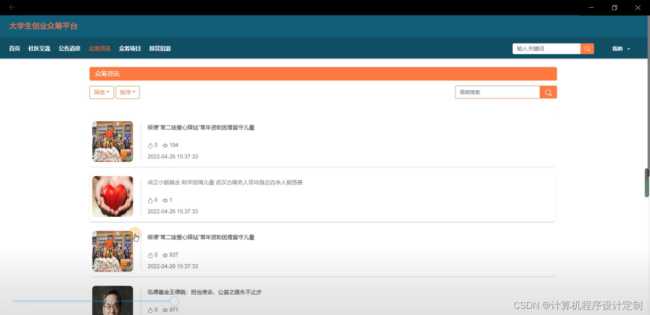 2、即时可见:对大学生创业众筹平台信息的处理将立马在对应地点可以查询到,从而实现“即时发布、即时见效”的系统功能。