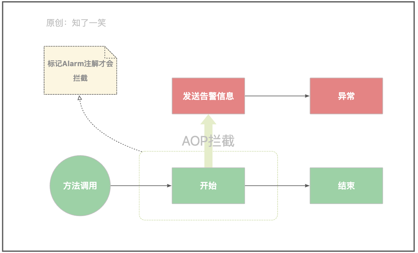 主要借助spring的切面技术,以及springboot的自动装配原理,实现了发送告警逻辑。对业务代码无侵入,只需要在业务代码上标记注解,就可实现可插拔的功能,比较轻量。
