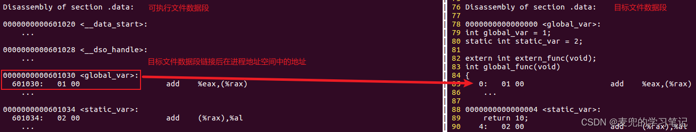 1. 通过对比目标文件和可执行文件中符号的差异,来分析符号重定位的过程