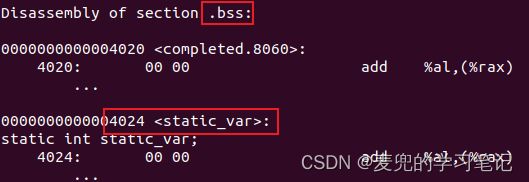 ② -no-pie编译选项表示关闭PIE模式,此时在64位Linux操作系统中默认的加载起始地址固定为0x400000