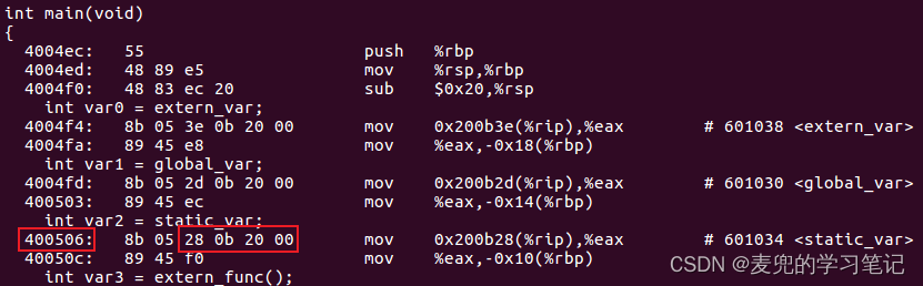 2. 访问外部变量和全局变量时,都是先从.got段将目标符号地址读取到rax寄存器,之后再通过间接寻址向变量中写入数据