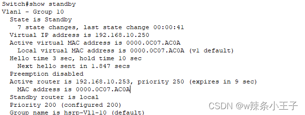 Switch(config-if)#standby 10 ip 192.168.10.250