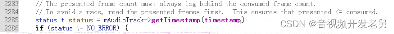 - * 注释中也提到这个返回值可能是有问题的,这可能也是api19后来增加了AudioTimeStamp类的原因