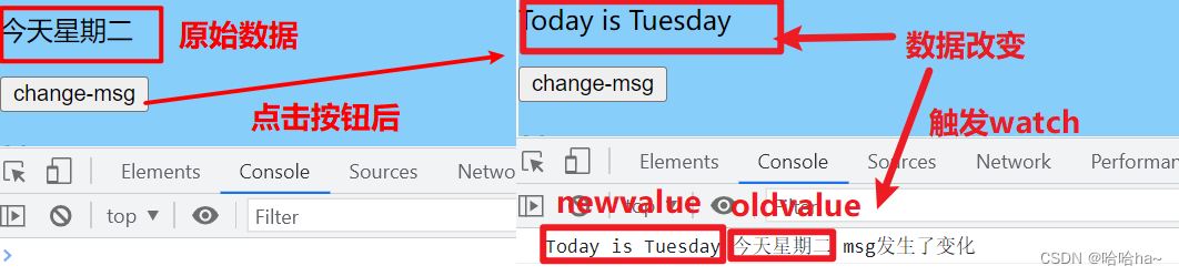 - console.log("点击了changeage按钮,修改了age,但是没有触发watch")