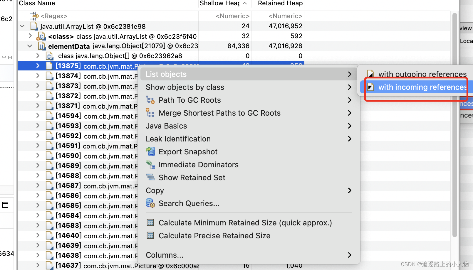 6.1、浅堆:一个对象消耗内存的大小,不包括其他引用对象大小的计算
