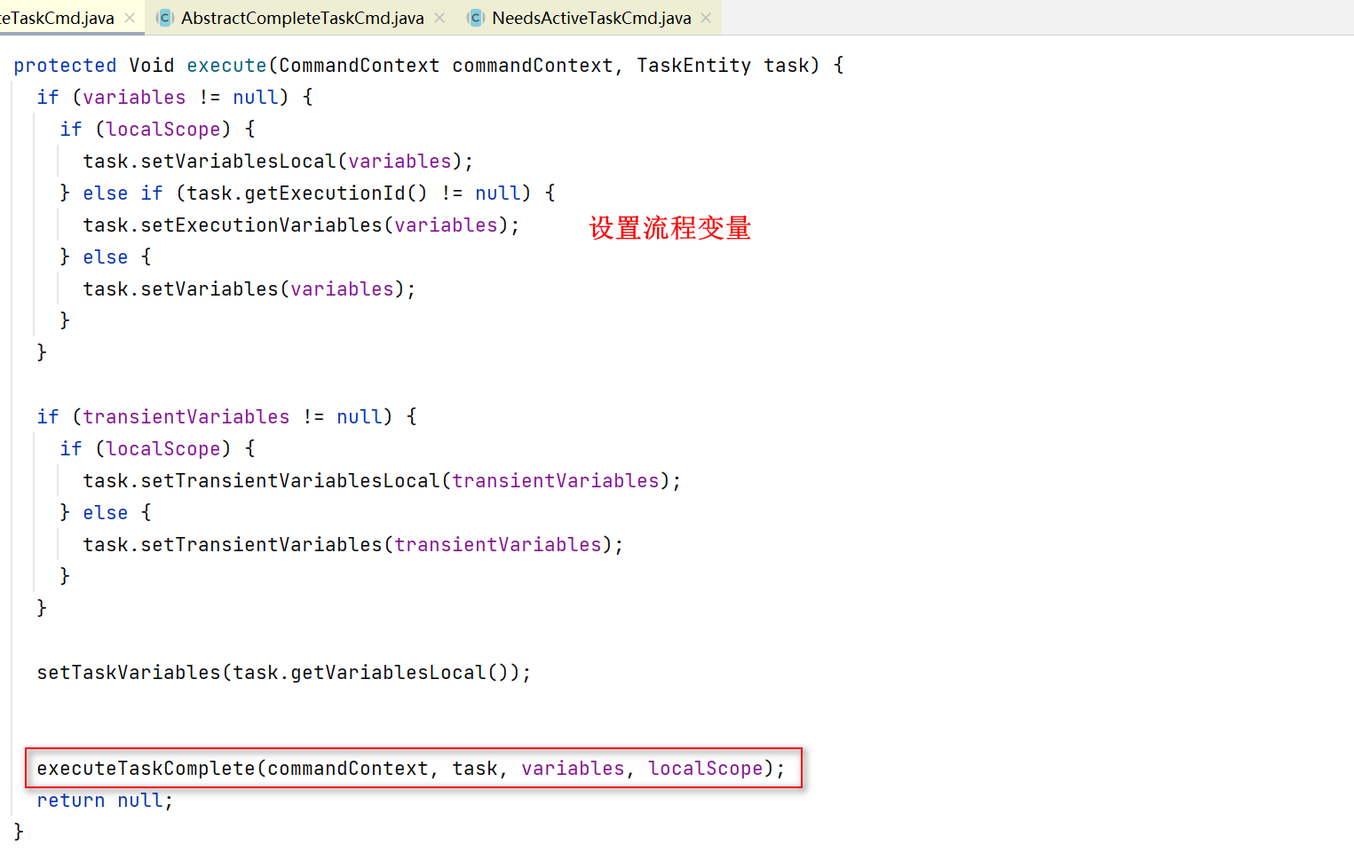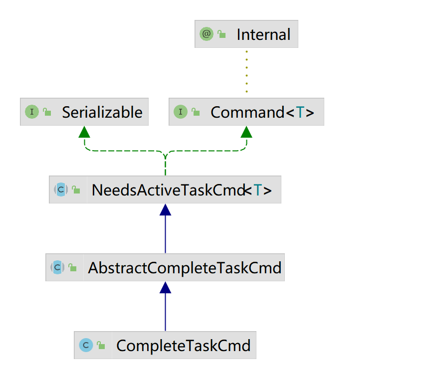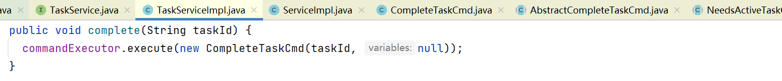 可以看到,完成任务的时候,直接new了一个CompleteTaskCmd,然后交由commandExecutor去执行