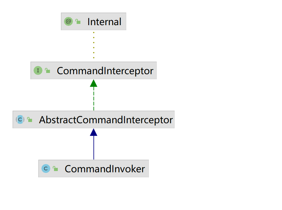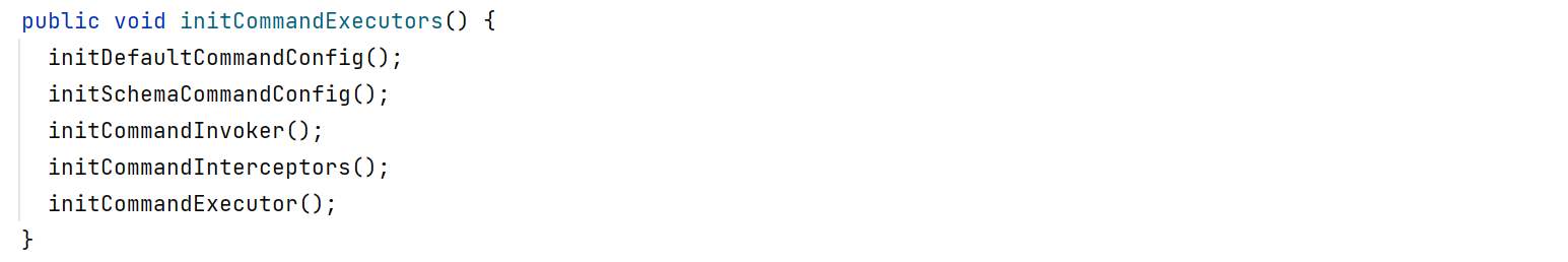 在前面 initCommandExecutor() 的时候我们指定,它其实是 CommandExecutorImpl,并且我们还知道它持有默认的命令配置,以及拦截器链中的第一个拦截器