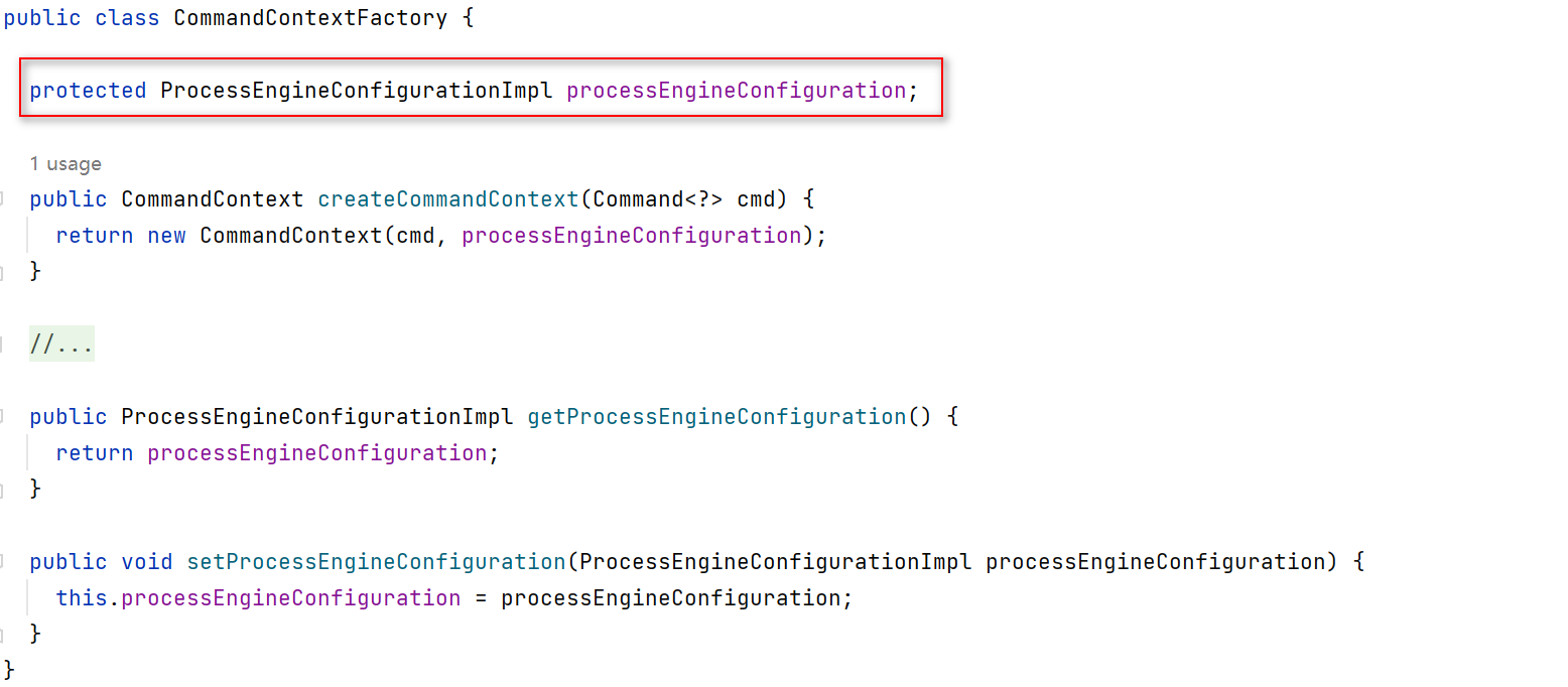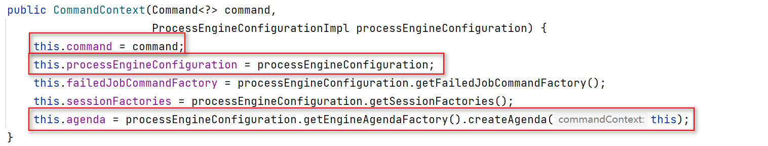 new了一个CommandContextFactory,重要的是CommandContextFactory中持有当前processEngineConfiguration的引用