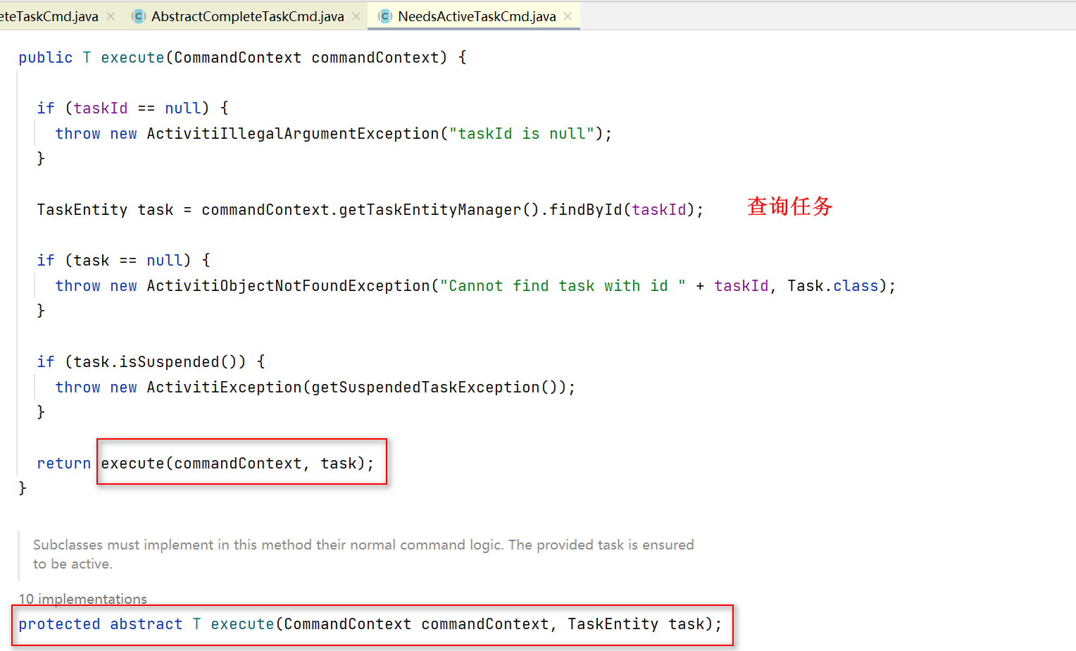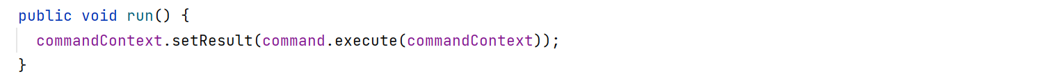 回到最初的完成任务命令,我们指定任务执行调用的Runnable的run()方法,run()方法里面是调用命令的execute方法