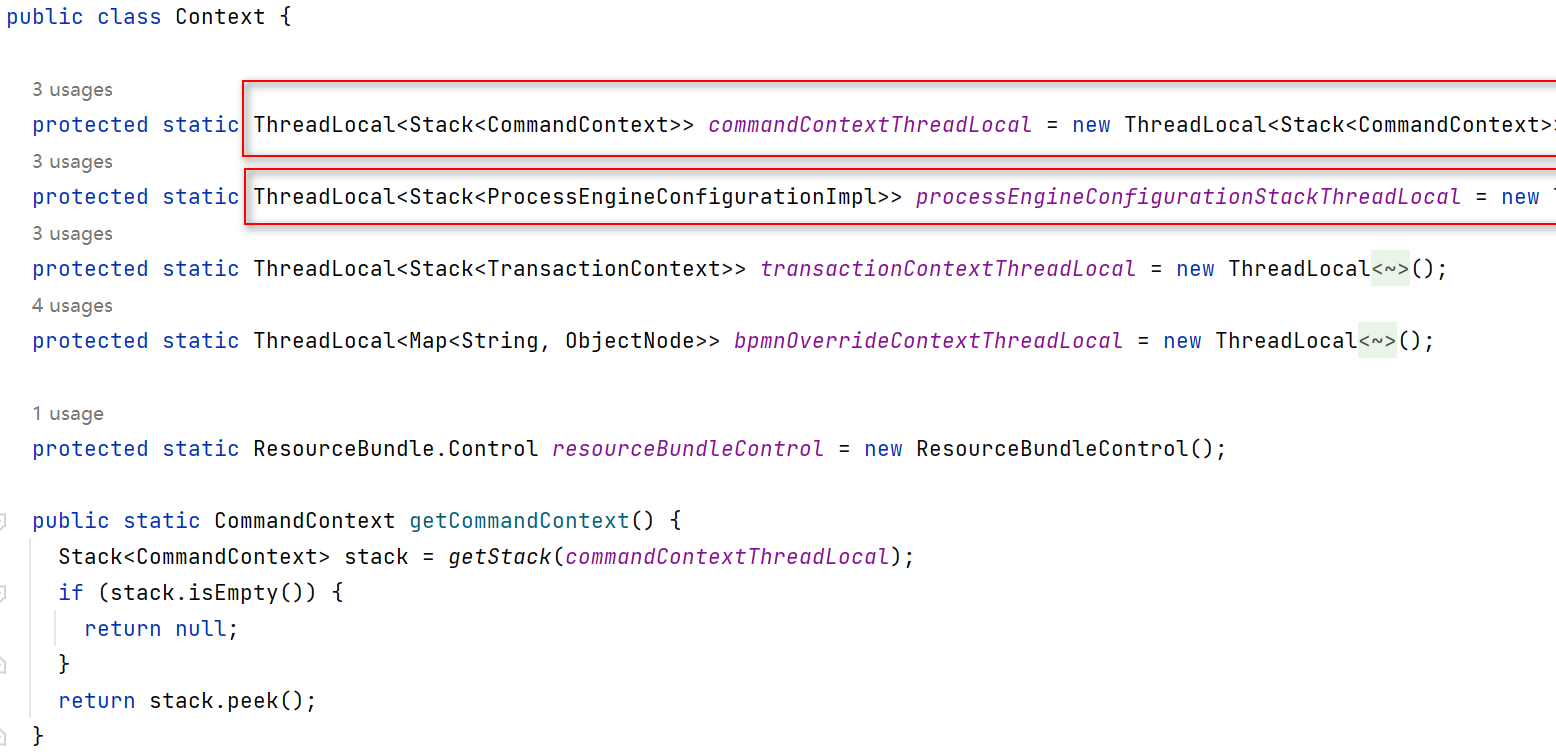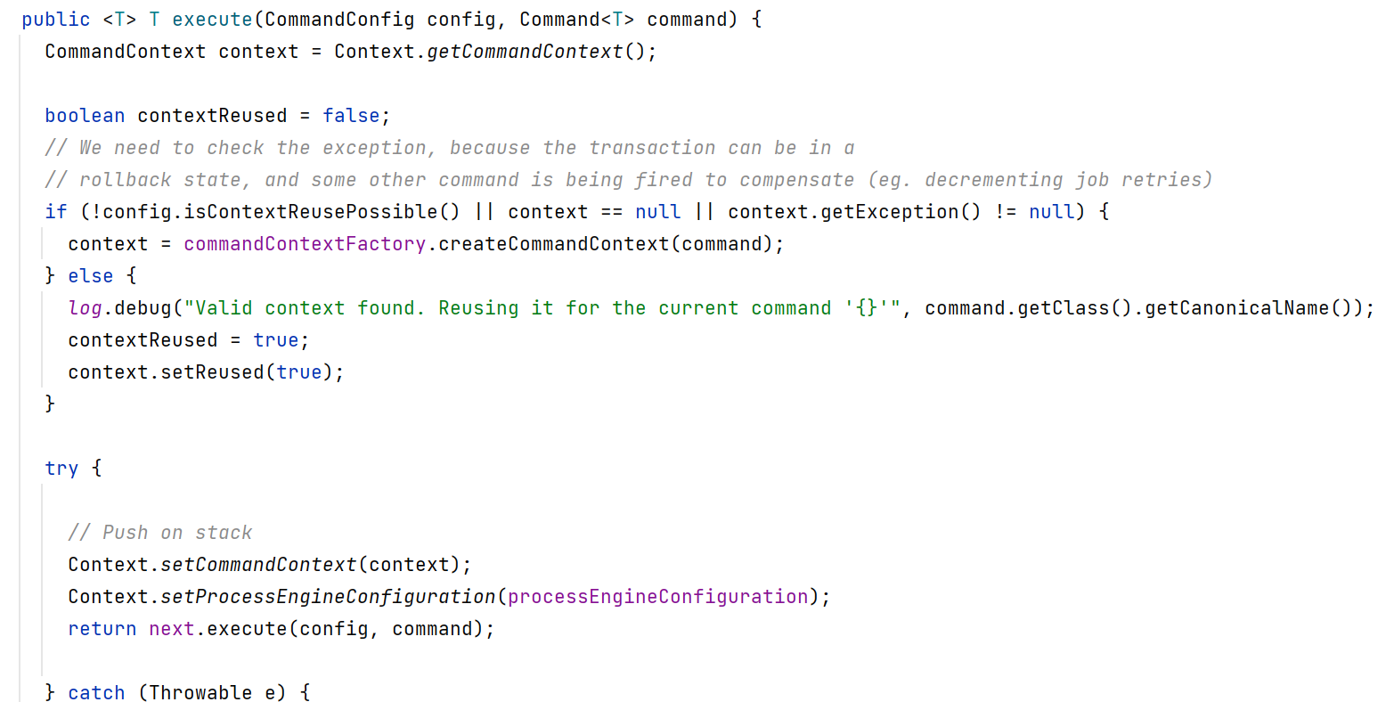 - 查找栈顶部的元素,如果为空,则新new一个CommandContext,如果不为空,则将获取到的CommandContext的熟悉reused设为true