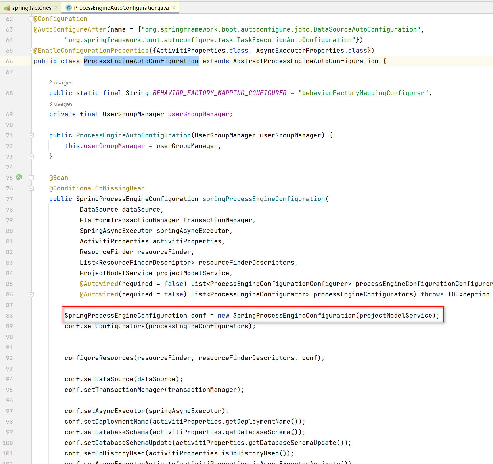ProcessEngineAutoConfiguration 是activiti-spring-boot-starter 7.1.0.M6自动配置的入口类,在这里主要看 SpringProcessEngineConfiguration