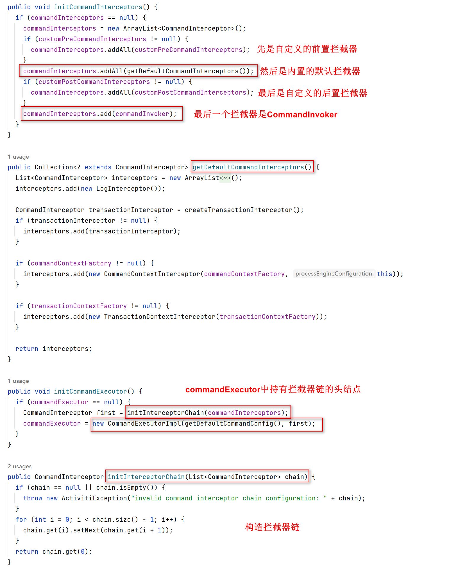 初始化拦截器interceptor要重点说下,这里构造了一个拦截器链,而且拦截器链的最后是CommandInvoker,并且将第一个拦截器放到CommandExecutor里面,姑且先记下,后面有用到