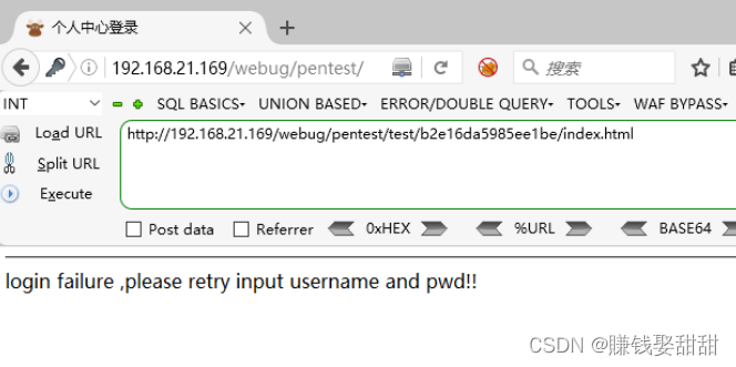 1、打开浏览器,访问http://ip/webug/pentest/test/b2e16da5985ee1be/index.html