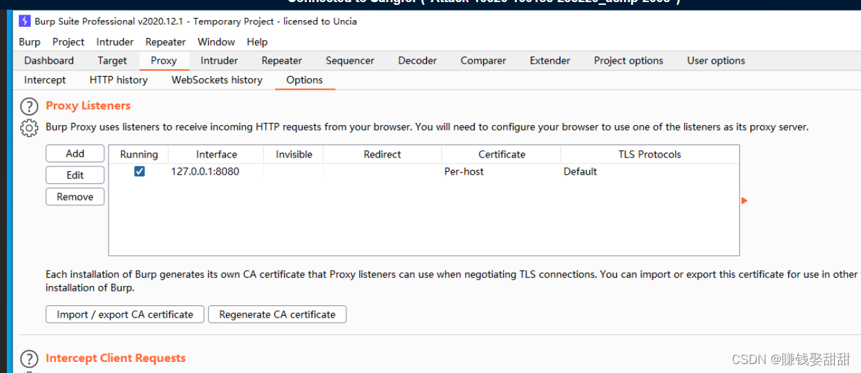 4、启动Burp Suite抓包工具,设置参数和代理