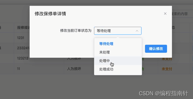 图5.9 报修状态修改界面
