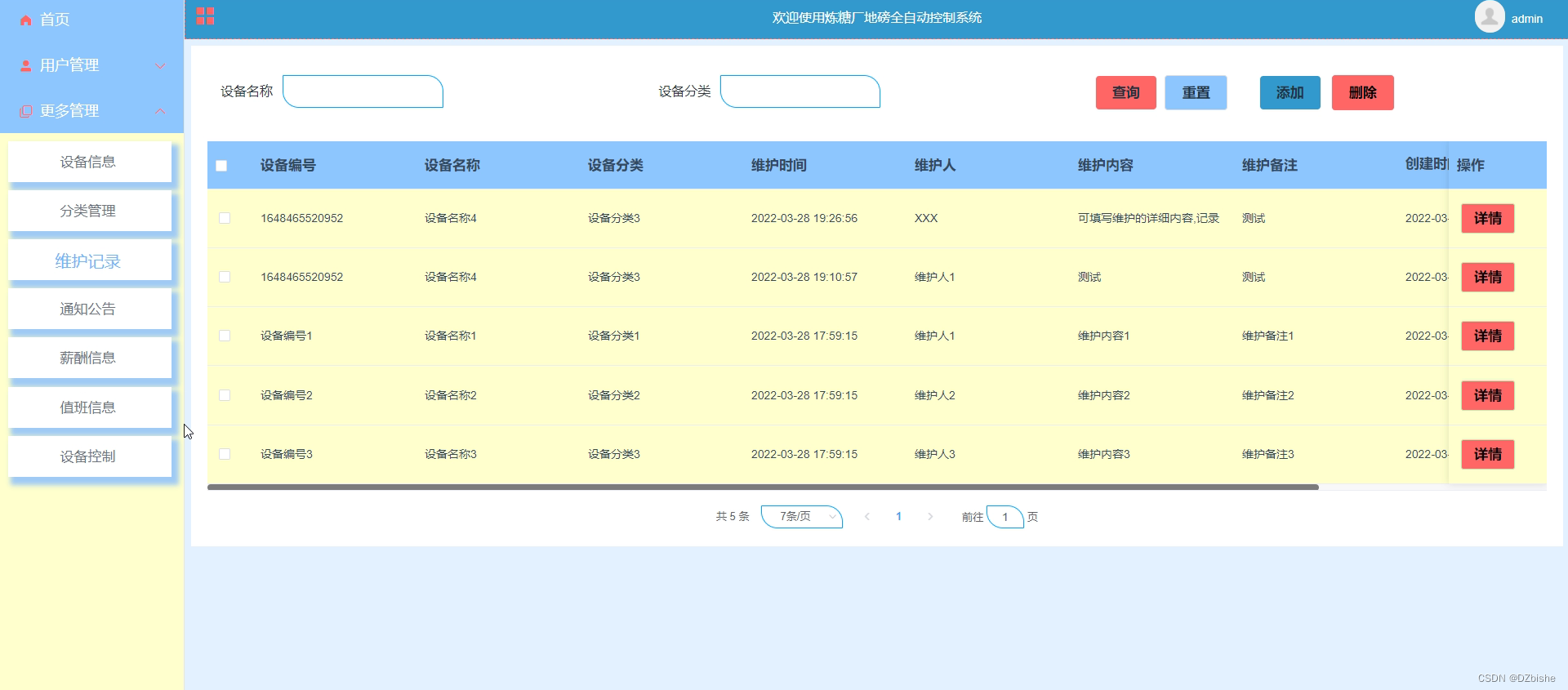 炼糖厂地磅全自动控制系统所拥有的数据表有以下:设备信息表,维护记录表、值班信息表、薪酬信息表、设备分类表、设备控制表等。
