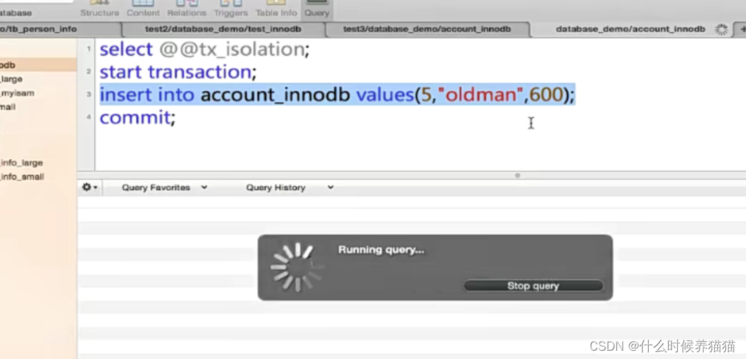 - set session transction isolation level repeatable read;//将隔离级别设置成repeatable read
