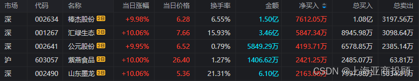 ③汇绿生态(001267),净额买入5847万元,所属板块:建筑装饰。上榜原因:连续三个交易日内,涨幅偏离值累计达20%的证券。1、9月26日,公司发布非公开发行股票发行情况报告书暨上市公告书。 2、公司上市日期为2021-11-17,主营为园林工程施工、园林景观设计及苗木种植等,能够完整的提供从苗木种植、园林工程设计、施工及后续绿化养护等全产业链服务。 3、公司在互动平台称:公司从事的业务包含乡村环境治理;城镇化的推进有利于公司业务的开展。
