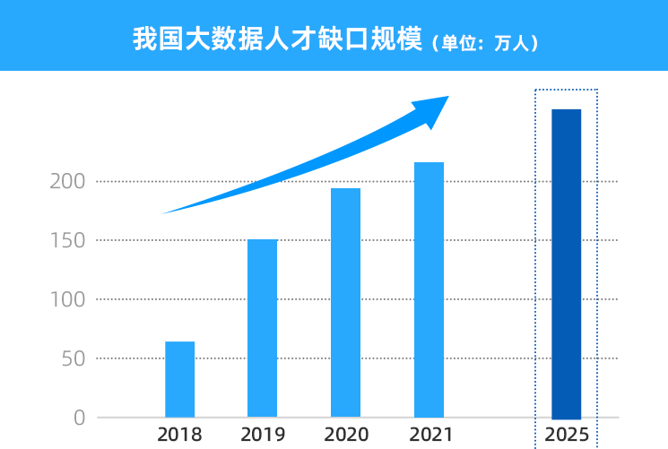 据《新职业——大数据工程技术人员就业景气现状分析报告》显示,预计2025年前大数据人才需求仍保持 30%-40% 的增速,行业人才需求量达到 250 万 。