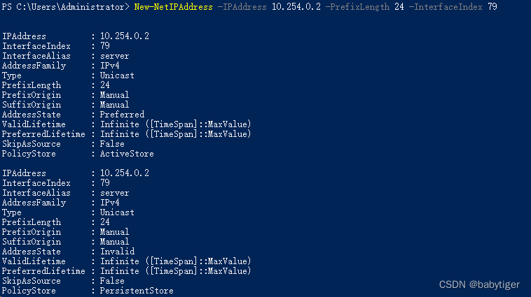 New-NetIPAddress -IPAddress 10.254.0.2 -PrefixLength 24 -InterfaceIndex 79