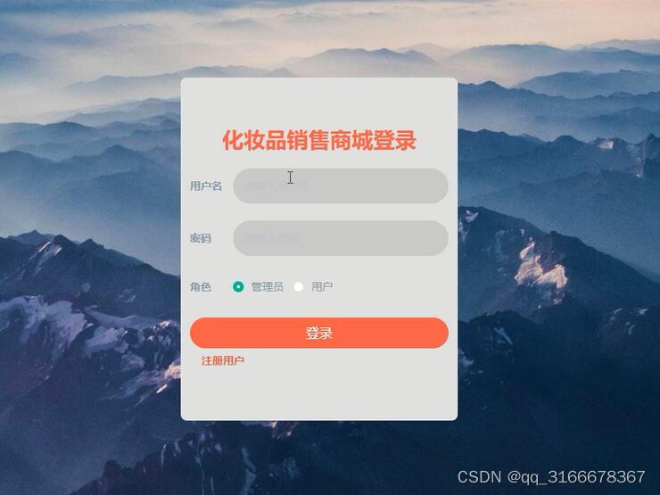 整个商城分为用户注册、用户登录、化妆品列表、化妆品详情、购物车、后台管理以及注销等模块。
