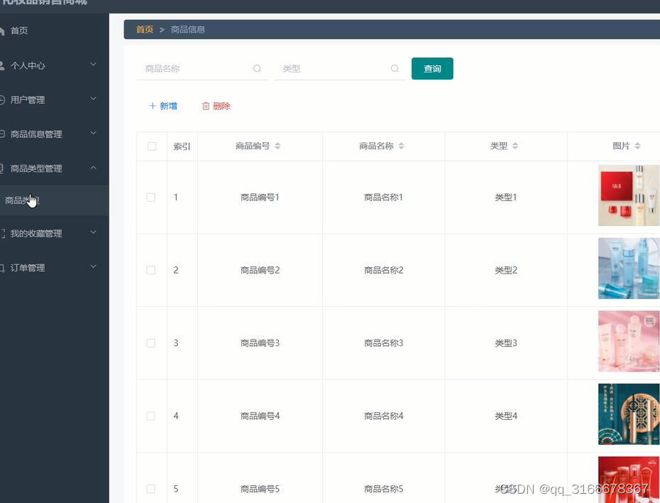 购物车模块:可以添加化妆品到购物车,也可以对购物车里的化妆品进行删除,清空购物车等。