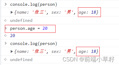 问题2:解决添加的属性不可遍历后,改变添加的属性的属性值后,但是打印对象,添加的属性值还是没变。