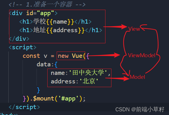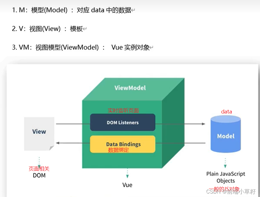 vm(ViewModel 的缩写) 这个变量名表示 Vue 实例。上面这句话是Vue2文档里面的,所以我们要学习Vue,就有必要去了解MVVM