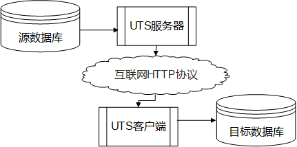 传输中,只有UTS的服务器接口暴露给客户端访问,起到了“中间件”的保护作用,源和目标的数据库都安全隐藏在后端;