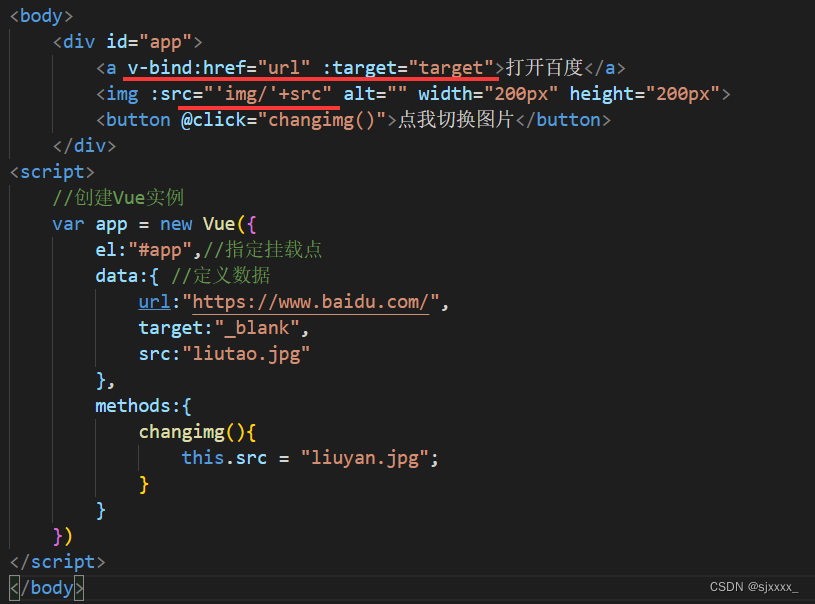 ④ 属性值一部分进行替换的格式::属性="'常量值' + vue对象data中的数据"