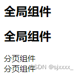 <script src="js/vue.min.js">script> head> <body> <div id="app"> <con1>con1> <con1>con1> <page-bean>page-bean> <page-bean>page-bean> div> <script> Vue.component("con1",{ template:" data(){ return{ msg:"全局组件" } }, methods:{ fun(){ alert(1); } } }) Vue.component("pageBean",{ template:" data(){ return{ msg:"分页组件" } } }) //创建Vue实例 var app = new Vue({ el:"#app",//指定挂载点 data:{ //定义数据