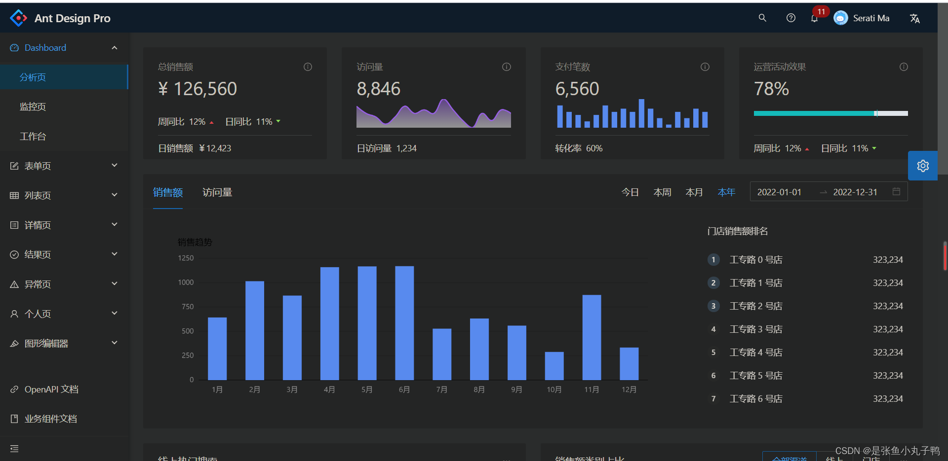 Ant Design Pro 是基于 Ant Design 和 umi 的封装的一整套企业级中后台前端/设计解决方案,致力于在设计规范和基础组件
